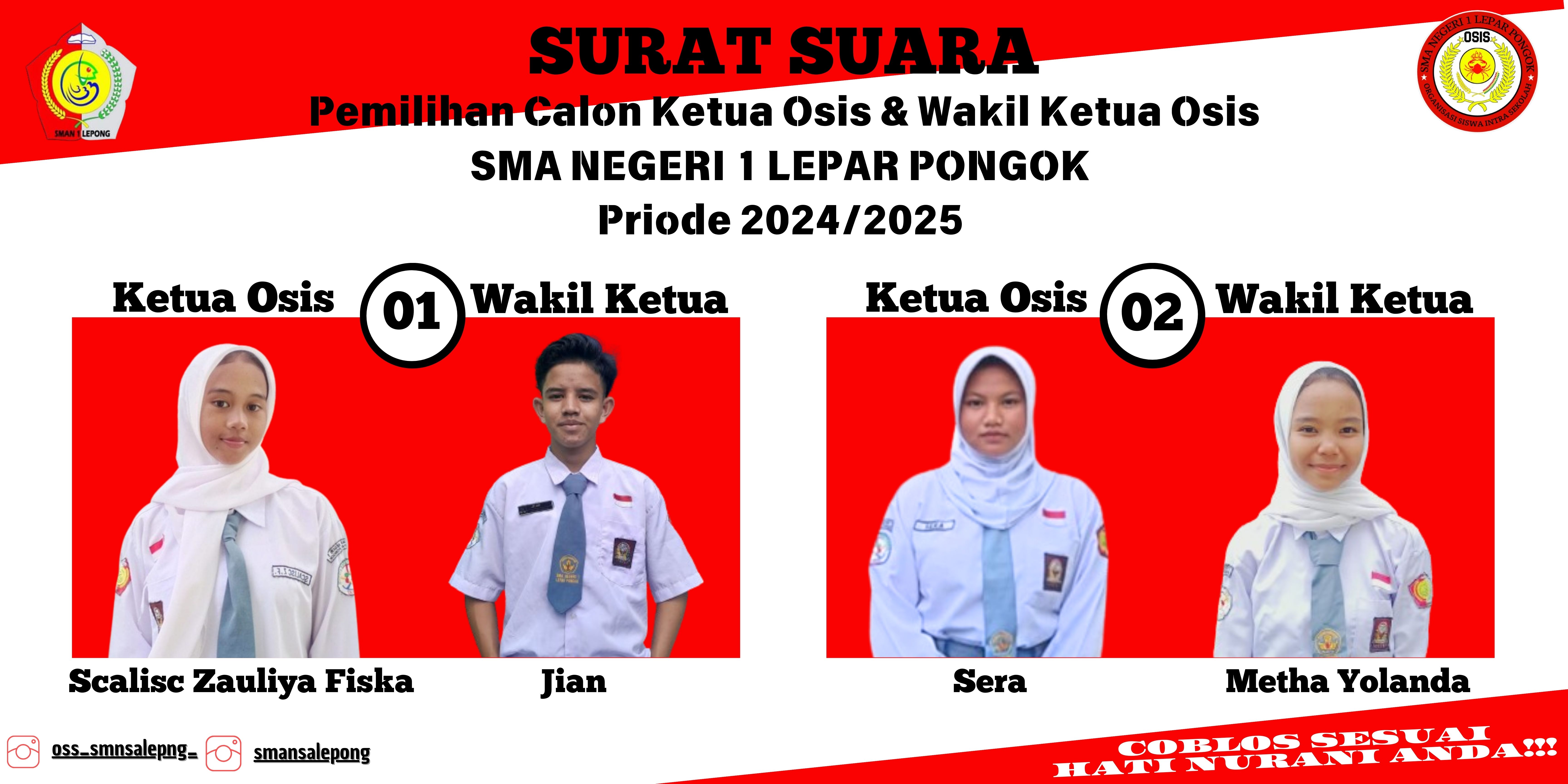 PASANGAN CALON KETUA-WAKIL KETUA OSIS TAHUN 2024